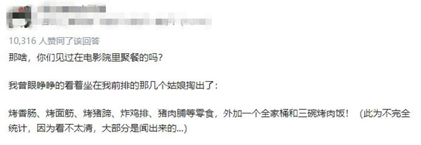 而除了這些隱患,電影院作為公共場所,大家總能在其中看到各種奇葩操作,很多網友就分享了那些年在觀影過程中的“難忘”記憶。