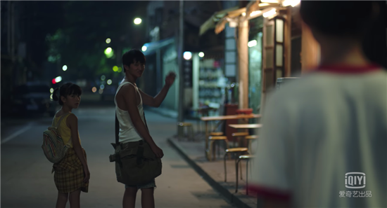 同樣是第一集,三個(gè)小孩走在大街上,此時(shí)的背景鋼琴聲清脆、悅耳,完全不同于剛開(kāi)始見(jiàn)面時(shí)的詭異。當(dāng)嚴(yán)良和普普轉(zhuǎn)身和朱朝陽(yáng)告別時(shí),鋼琴節(jié)奏加快,音樂(lè)的旋律更顯溫情。通過(guò)這段配樂(lè)和畫面表現(xiàn),我們知道朱朝陽(yáng)已經(jīng)放下了對(duì)嚴(yán)良和普普的戒備,真正把他們當(dāng)成朋友。