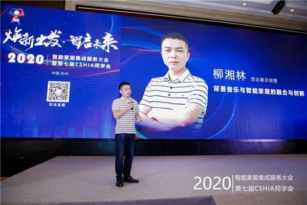 7月23日,2020智能家居集成服務大會暨第七屆CSHIA同學會在杭州三立開元名都大酒店成功舉行,來自不同智能家居品牌與一線集成服務商的代表匯聚一堂,圍繞行業熱點議題展開了熱烈討論。作為大會特邀嘉賓之一,悠達副總經理柳湘林帶來了“背景音樂與智能家居的融合與創新”的主題演講。