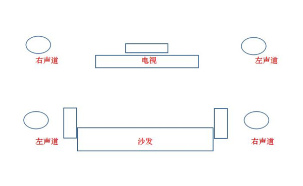 Tips:如果房間面積較大(如很多人家中都是客餐廳一體),建議用4只揚聲器安裝定位,安裝時確保對角為同一聲道,以保證在該區(qū)域的十字線上都能聽到最佳的立體聲音。