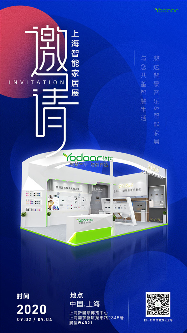 2020上海國際智能家居展覽會將于9月2日—9月4日盛大開展,作為智能家居實力品牌,悠達(dá)也將攜系列背景音樂&智能家居產(chǎn)品如約而至,為您全方位展示智能化帶來的生活新方式。
